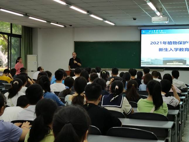 9月11日上午9点,农学院植物保护专业在四教召开2021级新生见面会。农学院院长王际睿教授,农学院党委书记黎明艳副教授,植物保护系主任陈华保副教授,副主任蒋春先副教授,植物保护系龚国淑教授及各位教师代表,外籍教师Zohreh Nasimi和山本老师,优秀毕业生代表陈淋及2021级全体新生参加了见面会。