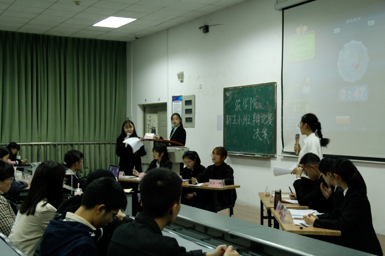 2020年11月13日晚7点,农学院第十届“博论杯”新生小班辩论赛决赛在4A202正式开始。农学院党委办公室主任、团委书记汤瑞瑞,农学院团委老师刘昱麟,农学院各部门主干和各学院辩论队同学受邀观看。