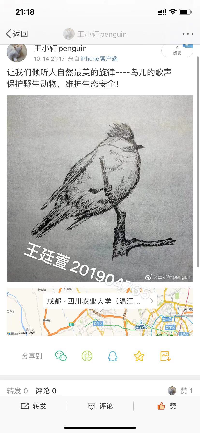 2020年10月4日是第89个国际动物日,为提升大学生爱护动物的意识,由四川农业大学动物医学院组织发起、由农学院于线上举办的“一笔一画的动物日”活动圆满结束,且取得良好成效。