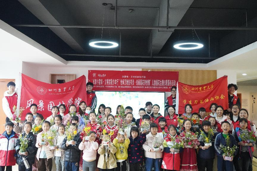 图为“花韵书香”团队与杏林社区举办儿童绘画插花公益活动