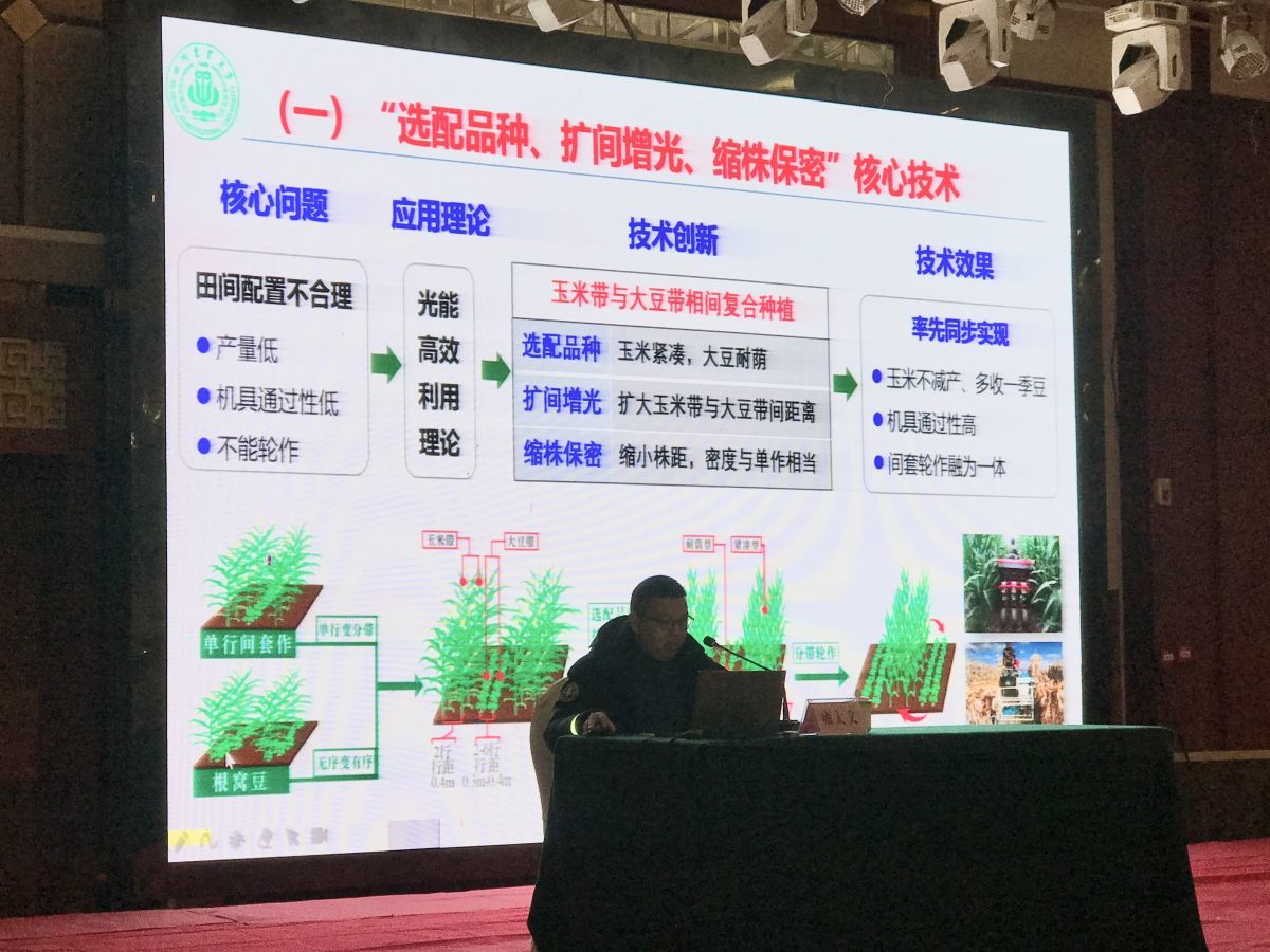 大豆扩种及玉米大豆带状复合种植技术具有“玉米不减少,多收一茬豆”的功效。在培训会上,四川农业大学农学院雍太文教授讲解了《玉米大豆带状复合种植技术》,四川农业大学机电学院副院长张黎骅教授讲解了《玉米大豆带状复合种植技术农机装备与应用》,四川省豆类杂粮创新团队夏大豆育种岗位专家吴海英研究员对四川省大豆生产现状及主推技术、主推品种进行了介绍。