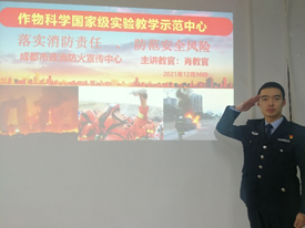 寒假临近,为强化学院实验室安全监督管理,防范实验室消防安全事故,提高中心全体师生的消防意识,保障师生的人身财产安全,12月30日,农学院组织开展了作物科学国家级实验教学示范中心消防安全培训会,邀请了成都市政消防宣传中心肖俊龙教官进行培训,中心全体师生参加。