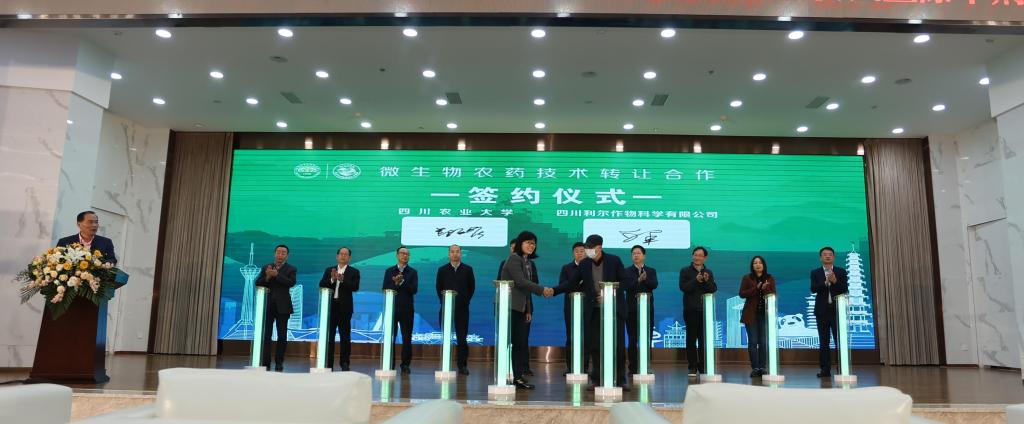 2022年3月24日,我校农学院和四川利尔作物科学有限公司(上市公司利尔化学股份有限公司的子公司)在绵阳市举行BT生物农药技术转让签约仪式。