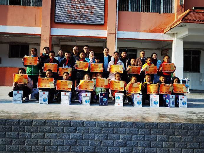 仪式上,顾吉民首先代表千万贯乡政府热烈欢迎川农大和捐资单位代表的到来,并大力感谢学院及企业长期以来对千万贯乡中心校师生的关爱和帮助。黎明艳代表农学院发言,她表示农学院与四川瑞进特科技有限公司携手共同资助雷波困难学子已有三年时间,她鼓励同学们能用知识改变命运,走出大山看到更广阔的世界,并立志投身乡村振兴的伟大事业中,把家乡建设得更美丽。黎明艳一行为20名品学兼优的家庭经济困难学生颁发“川农-瑞进特励志奖学金”和奖品,并为中心小学的450名学生和20余名教师逐一送上书包和水杯等慰问品,共同祝愿学生们能够快乐成长,用知识改变命运,拥抱更美好的世界。