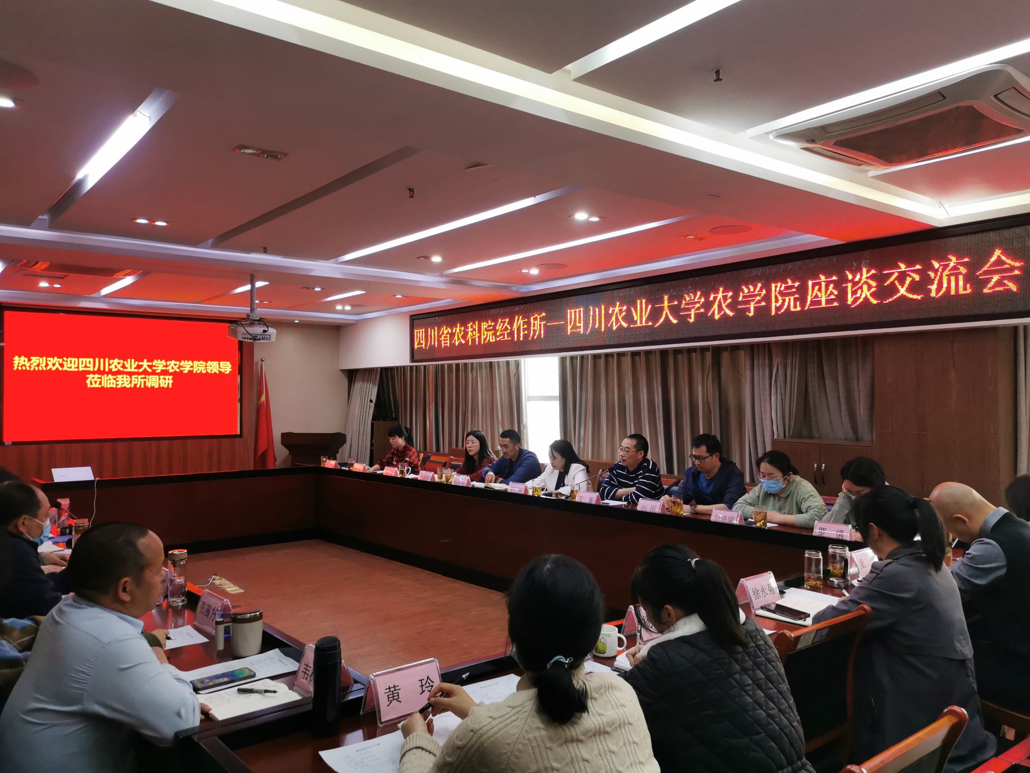 为持续深化开拓就业市场,落实《四川农业大学2023年“访企拓岗促就业”专项行动实施方案》,3月9日下午,农学院党委书记黎明艳率农学院副院长王强、党委办公室主任兼团委书记陈红星、行政办公室主任向刚、以及党委行政办公室老师等一行11人到四川省农科院经作所座谈交流,经作所党委书记张小军,经作所党委副书记、所长叶鹏盛,经作所党委副书记、副所长张超,经作所纪委书记岳福良以及经作所各部门负责人参加座谈交流。经作所党委书记张小军主持会议。