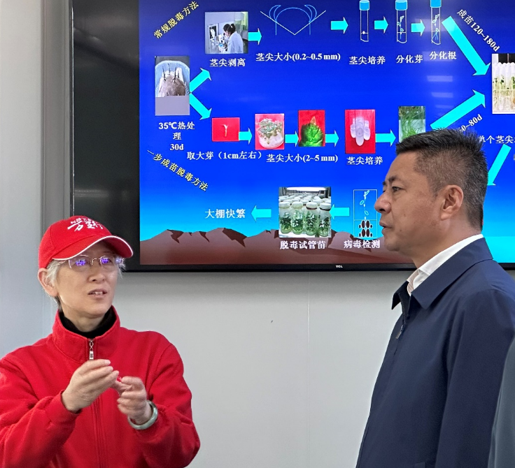 虞平充分肯定了团队师生驻扎农业生产一线,打造布拖县马铃薯种业芯片,将生产实践与理论教学紧密结合,助力布拖县马铃薯产业发展做出的突出贡献,并关怀了入驻基地毕业研究生就业情况。虞平表示,将持续加强人才引进力度,践行“人才优先”发展战略,鼓励研究生们毕业后继续为凉山州产业发展贡献力量。