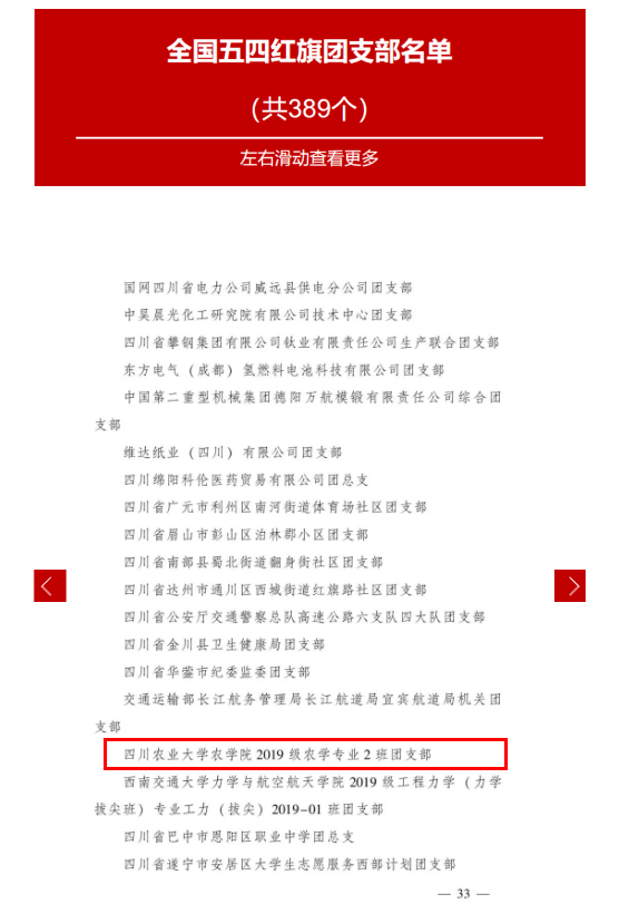 4月20日,全国“两红两优”光荣榜揭晓,我校农学院农学201902团支部获“全国五四红旗团支部”称号,这是我校2002年原动物科技学院团总支获“全国五四红旗团支部标兵”以后,时隔20年再次有基层团支部获评团中央两红两优表彰,今年省内仅我校和西南交通大学两所高校基层团支部获此殊荣。