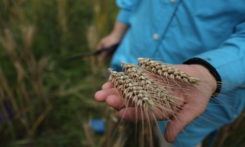 田野中的蒲至恩教授是四川农业大学的小麦遗传育种系主任,曾带领团队评价1300余份小麦种质资源的品质性状,为提升四川小麦品质性状提供了基础资源材料,且在众多种质资源中发现了彩粒小麦。十多年来,蒲至恩及其科研团队坚持利用丰富的种质资源,有目的地组配杂交组合,进行彩粒小麦育种,目前已选育出10余种不同颜色的小麦。