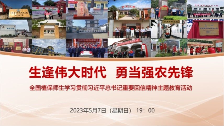 五四青年节到来之际,习近平总书记给中国农业大学科技小院的同学们回信,充分肯定同学们“自找苦吃”的精气神,并对新时代青年提出殷切期望。5月7日,中国农业大学植物保护学院联合全国34个高校、单位主办了“生逢伟大时代勇当强农先锋”的主题教育活动。中国工程院院士、吉林农业大学植物保护学院李玉教授为代表的7位科技小院专家和2名学生负责人受邀分享科技小院故事,超过2万名植保师生通过线上线下途径参与了活动。我校农学院植物保护学系资源利用与植物保护专业2020级硕士研究生钟森作为2名入驻科技小院的学生负责人代表之一在大会上作主题发言。