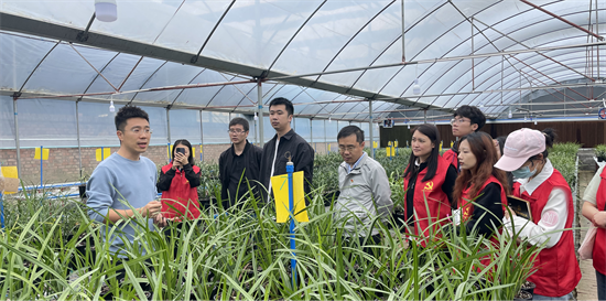 在东坡区金光村多品种兰花基地,兰花培育负责人向到访师生求教兰花组织培养及脱毒育苗技术,并与到访四川农业大学农学院徐东北副教授进行现场交流。下一步,四川农业大学农学院还将就此次收集带回的兜兰样本开展实验验证。