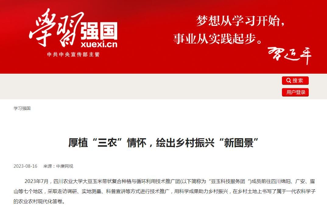 2023年7月,四川农业大学大豆玉米带状复合种植与循环利用技术推广团(以下简称为“豆玉科技服务团“)成员前往四川绵阳、广安、眉山等七个地区,采取走访调研、实地测量、科普宣讲等方式进行技术推广,用科学成果助力乡村振兴,在乡村土地上书写了属于一代农科学子的农业农村现代化答卷。