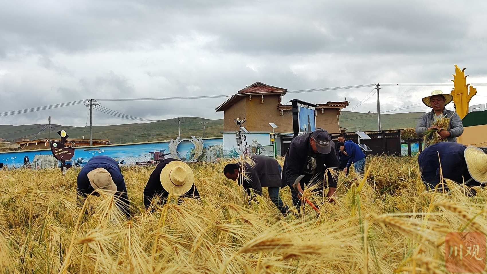 眼下,川西雪域高原的青稞已进入收获季。9月7日,阿坝藏族羌族自治州阿坝县龙藏乡塔拉村村民泽让兰木尖却没有着急去自家地里,他跑去了离家两三公里外的阿坝县青稞现代农业园挣高工资,“一天有一两百元哦。”