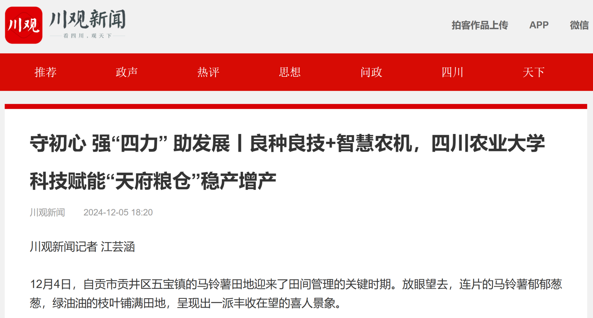 五宝镇只是四川农业大学(以下简称“川农大”)众多科技示范基地的一个缩影。今年,学校的科研人员继续坚持产学研、农科教相结合,尤其是通过“良种良技+智慧农机”的创新应用,为保障“天府粮仓”稳产增产提供了坚实的科技支撑。