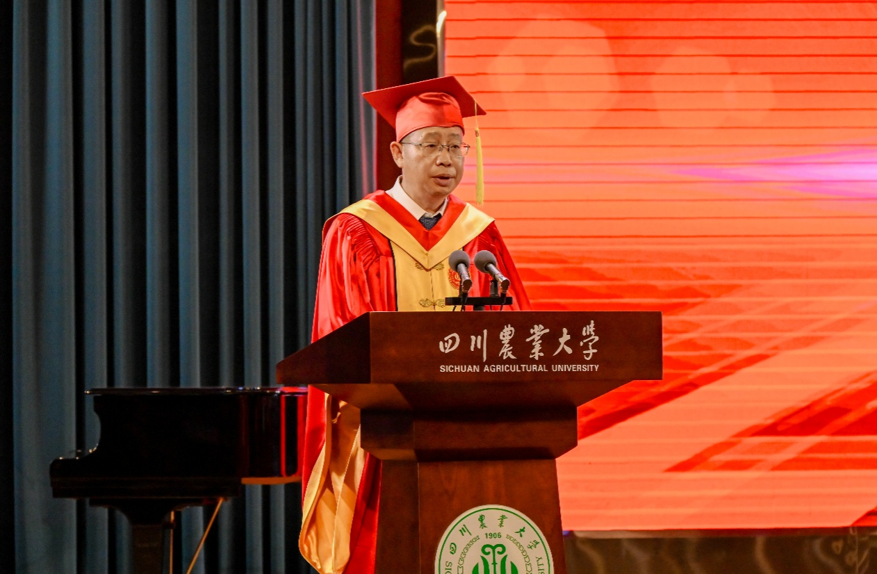 王静深情地向毕业学子送出了送别致辞,她回顾了学院119年办学历史与学子在校时光,以“观大势、致远方、守初心”三个方面寄语毕业生,希望他们肩负起强农兴农的使命,传承“川农大精神”,在农业领域书写青春华章。