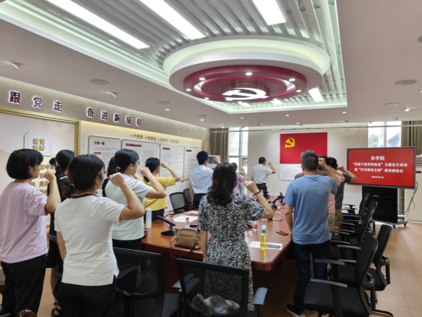 全体与会党员在植保党支部书记陈华保的带领下,面对鲜红党旗,重温入党誓词,誓言铿锵,初心如磐,再次激发了党员们为党的教育事业奋斗终身、为学科发展贡献力量的坚定信念。