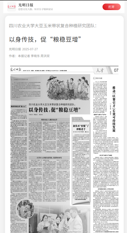“把新技术真正落到土地上的过程,也是把论文写在大地上的过程。”杨文钰说,这样历练过的人才能获得成长。