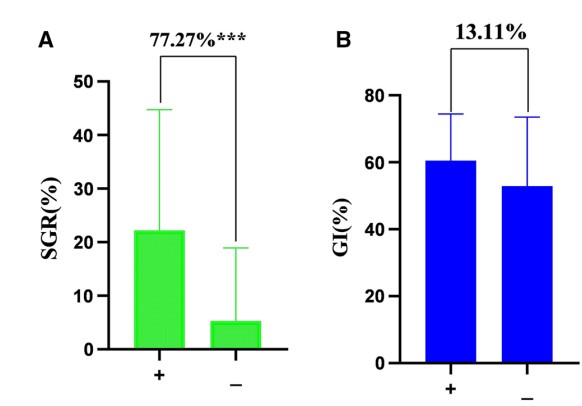 图3 QTL cQSGR.sau.3D对SGR和GI的影响