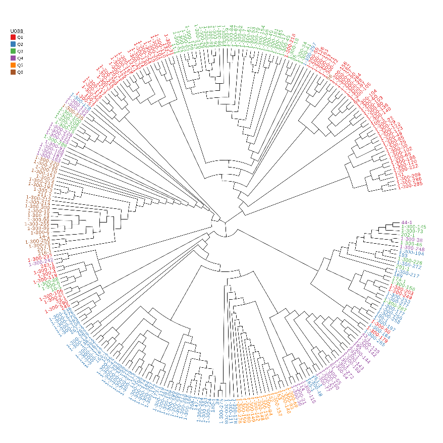 图2基于GBS鉴定到的5949446个SNPs构建的269份青稞自然群体的进化树