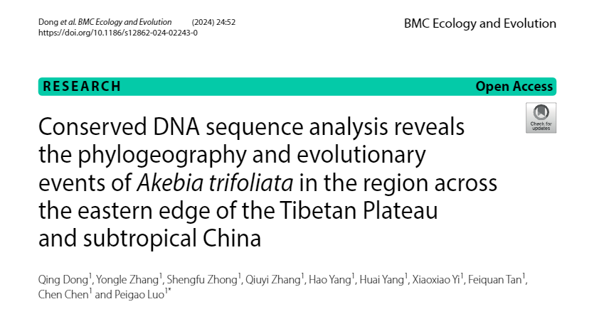 三叶木通以其独特的营养价值在市场上备受喜爱,在经济和商业领域展现出重要作用。在近年来构建的“天府森林粮库”战略布局中,三叶木通作为一种重要的木本油料资源,在丰富森林粮库的资源多样性、提升森林质量上具有重要意义。然而,关于三叶木通的物种起源地一直是个备受关注的问题。近日,四川农业大学罗培高教授团队在期刊BMC Ecology and Evolution发表研究论文《Conserved DNA sequence analysis reveals the phylogeography and evolutionary events ofAkebia trifoliatain the region across the eastern edge of the Tibetan Plateau and subtropical China》,研究在三叶木通的物种起源上取得突破性进展。