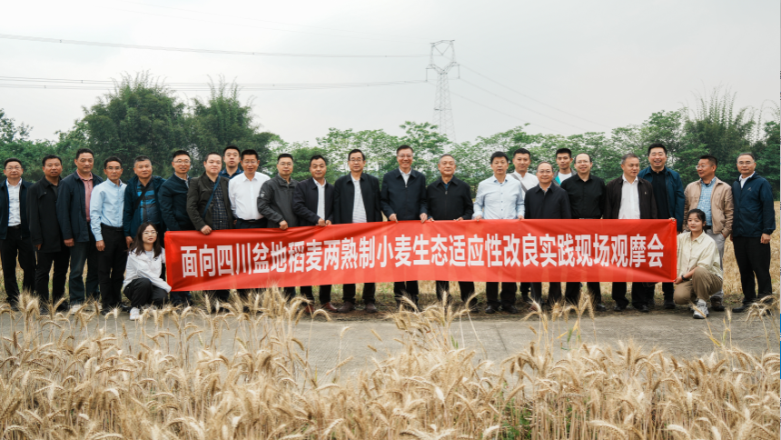 展的基石,四川农业大学曾在上世纪末的国内小麦育种工作中作出了巨大贡献,而当前早播小麦的育种思路业同样具有独特性,是农业新质生产力的表现之一。实践表明该品种和配套的栽培措施每亩可提升小麦产量150-200斤,具有明显的增产效果,将为西南片区小麦的增收提供潜在抓手,为建设新时代更高水平“天府粮仓”的行动方案扩充实践路径。希望基地方在进一步完善稻麦高产周年制度设计以及阐明早播带来增产的分子机理的基础上,为四川农业大学小麦育种工作添砖加瓦,为保障粮食安全战略实施作出应有贡献。