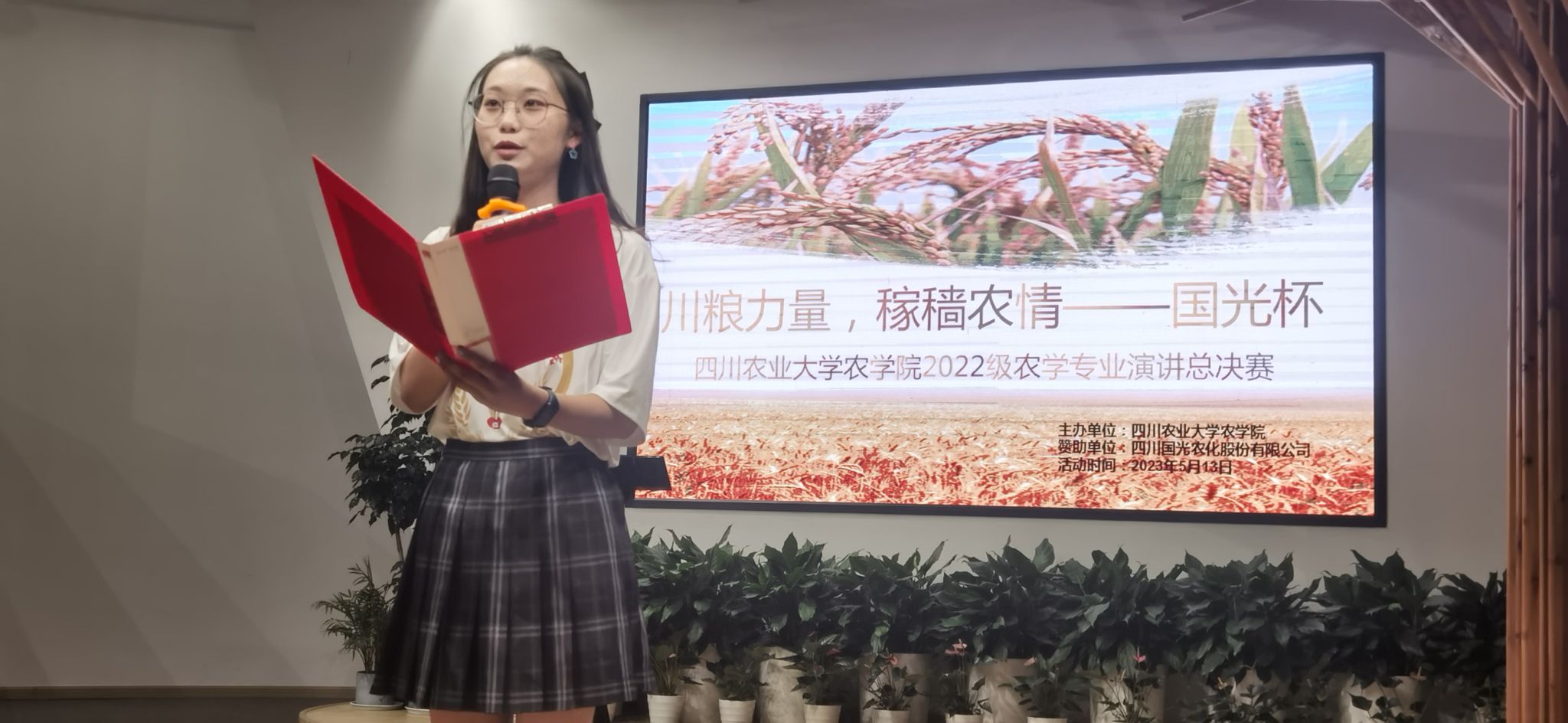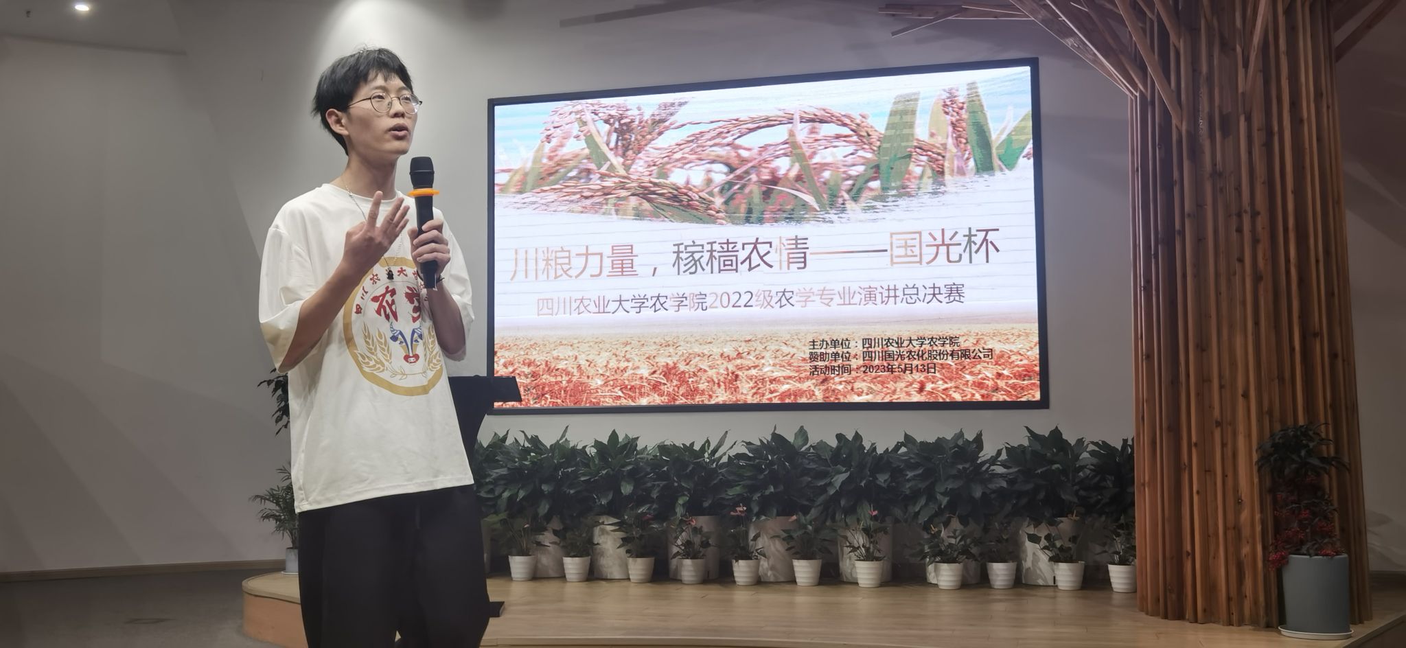 2023年5月13日,农学院农学专业“川粮力量,稼穑川农”演讲比赛总决赛在川农牛科创农庄演播厅成功举办。本次邀请到四川国光农化股份有限公司副总裁吴攀道、作物技术部部长张江文,四川农业大学农学院主任陈红星等担任总决赛评委。