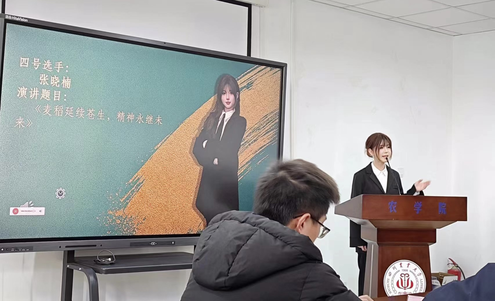 2023年12月24日下午,农学院第二届国光杯·“川粮力量 稼穑农情”演讲决赛于第七教学楼405顺利举办。本次比赛以当前农业绿色高质量发展为背景,以“川粮力量,稼穑农情”为主题,面向农学专业2023级全体同学展开,将课堂理论学习和课外实践活动相结合作为比赛的前期预热,并最终以比赛形式展现同学们的学习成果。
