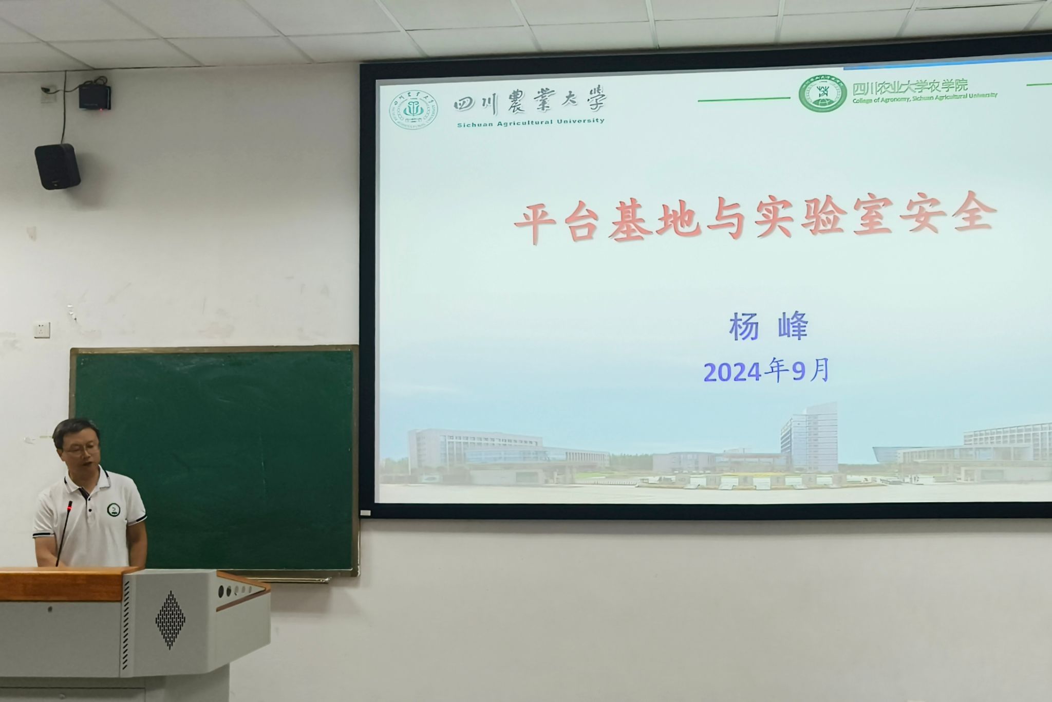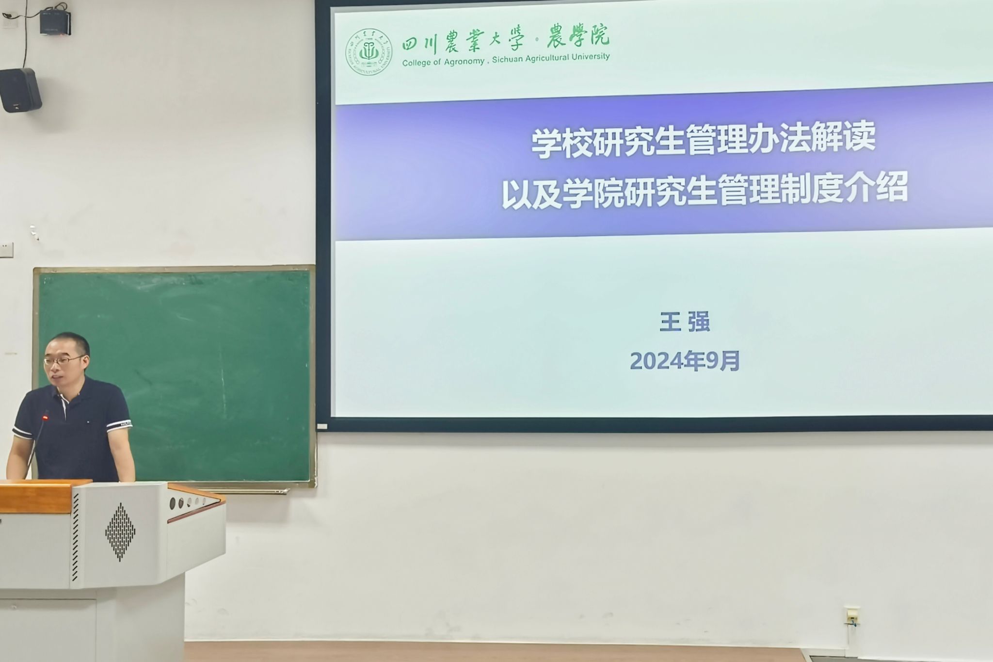 四川农业大学农学院研究生开学典礼暨入学教育大会于9月12日上午8:30在4A-306隆重举行。院长王静教授、党委书记唐城副教授、副院长王强教授、副院长杨峰教授、党委副书记闫宇薇、各系主任、兼职管理导师各系主任、兼职管理导师。大会由副院长王强主持。
