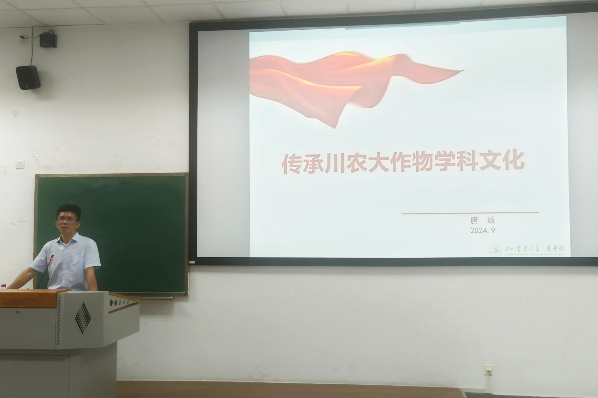 院长王静首先代表学院全体师生向新生表示热烈的欢迎和诚挚的祝贺,接着从学院基本情况、学科专业概况和研究生培养质量三方面对学院、学科的发展进行介绍,并对全体新生提出殷切期望,“希望同学们肩负起强农兴农的使命担当,在新时代、新征程做出新的更大贡献!”党委书记唐城用红色文化基因的融入与沉淀、历代川农名师的缔造与践履、新时代的学科文化传承三个主题讲述了“川农大精神”的内涵,向全体研究生提出了继承、发扬川农大精神的要求和期盼。随后副院长王强向全体新生详细解读了学校研究生管理办法、研究生培养方案、学院研究生管理体系以及研究生国际交流政策。副院长杨峰围绕实验平台与基地情况以及实验室安全教育的内容做了详细介绍,嘱咐同学们进行实验的首要条件是安全,希望同学们科研用心,实验用心,安全放心。党委副书记闫宇薇结合学校关于交通安全的相关文件,对全体新生进行交通安全教育,更是结合国防安全相关案例,希望全体新生加强安全意识,要坚定政治立场,警惕网络安全。教授委员会主任唐宗祥以“科研道德与诚信”为主要议题展开讲解,从学术诚信的基本定义出发,指出出现学术不端行为的诱因以及国家对学术道德与科研诚信的重视,并结合案例提出讨论,引发全体研究生的深刻思考。最后,研究生会主席周会娴进行了农学院研究生会的招新宣讲。