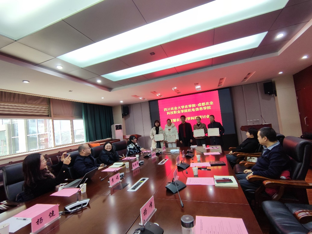 唐城代表农学院欢迎成都农业科技职业学院各位领导和老师交流研讨,介绍了农学院的基本情况,并从党建引领、学生中心、四强四困、五联共享等方面探讨了智慧农业科学研究、人才培养和社会服务相关工作。李娟介绍了农职院的基本情况,并围绕提质进位、建高创本、平台共享等方面进行了交流。我校智慧农业系主任任天恒就智慧农业专业建设、人才培养、科学研究、实践平台等方面进行了全面的介绍。随后,双方教师围绕教学方法、课程建设、平台建设、师资共享等人才培养相关内容进行了热烈的讨论和交流。