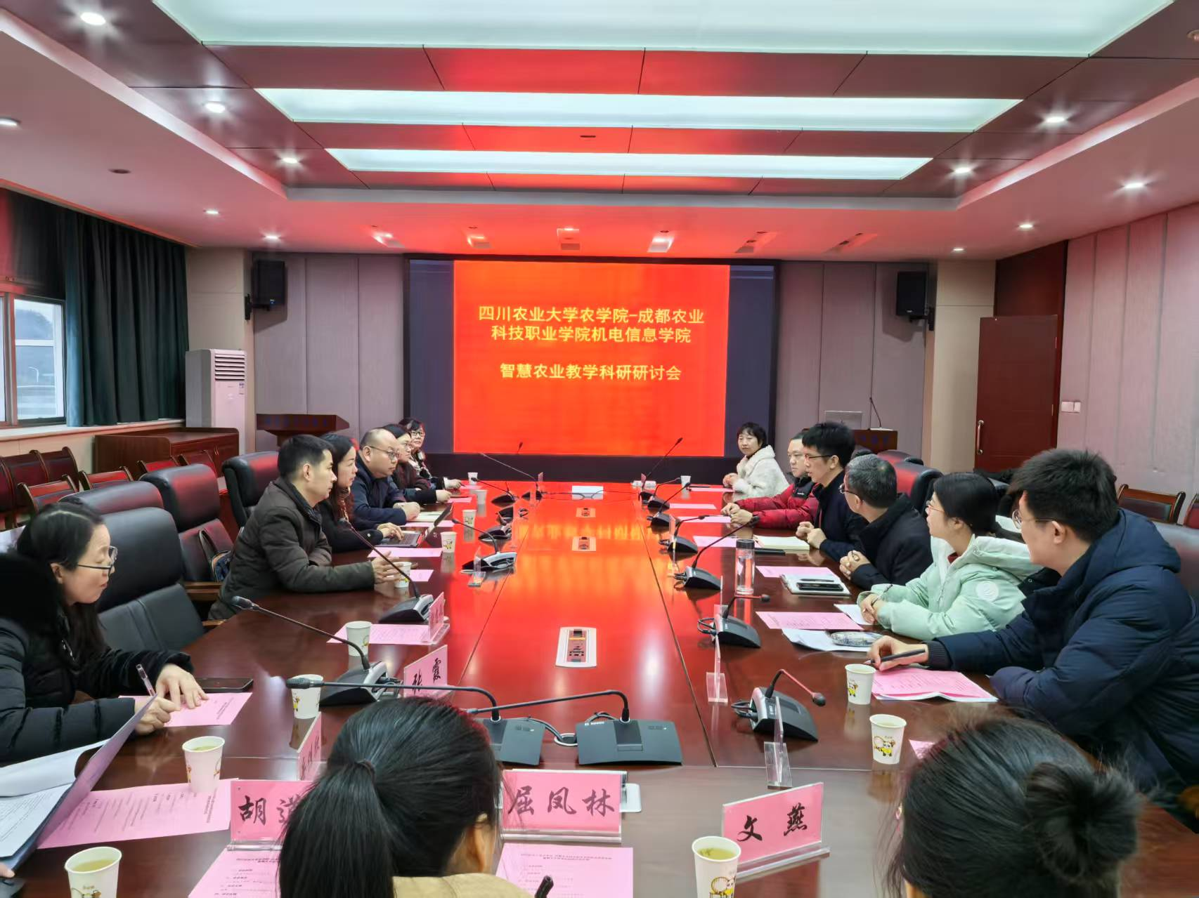 2025年1月15日,成都农业科技职业学院产教融合处李娟副处长带队,机电信息学院杨建及农业信息技术相关教师14人赴我校农学院开展智慧农业产教融合研讨交流。我校农学院唐城书记以及智慧农业系全体教师参加研讨。会议由农学院副院长杨峰教授主持。