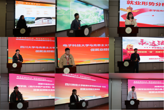 川农大农学院作物栽培学与耕作学硕士研究生党支部书记郑亭结合学科特点对当前研究生就业形势进行了全面深入的剖析,并展示分析了前期支部调查本校作物学科应届毕业研究生就业状态的问卷结果。针对这一现状,支部通过党建引领探索出“科研+竞赛+社会实践”三位一体的就业能力提升路径。四川大学马克思主义学院博士党支部等参会党支部围绕“党建+就业”等主题进行了交流研讨。台沃科技集团股份有限公司、四川国光农化股份有限公司围绕企业人才需求与培养路径,结合优秀个人发展案例作了人才引进推介。