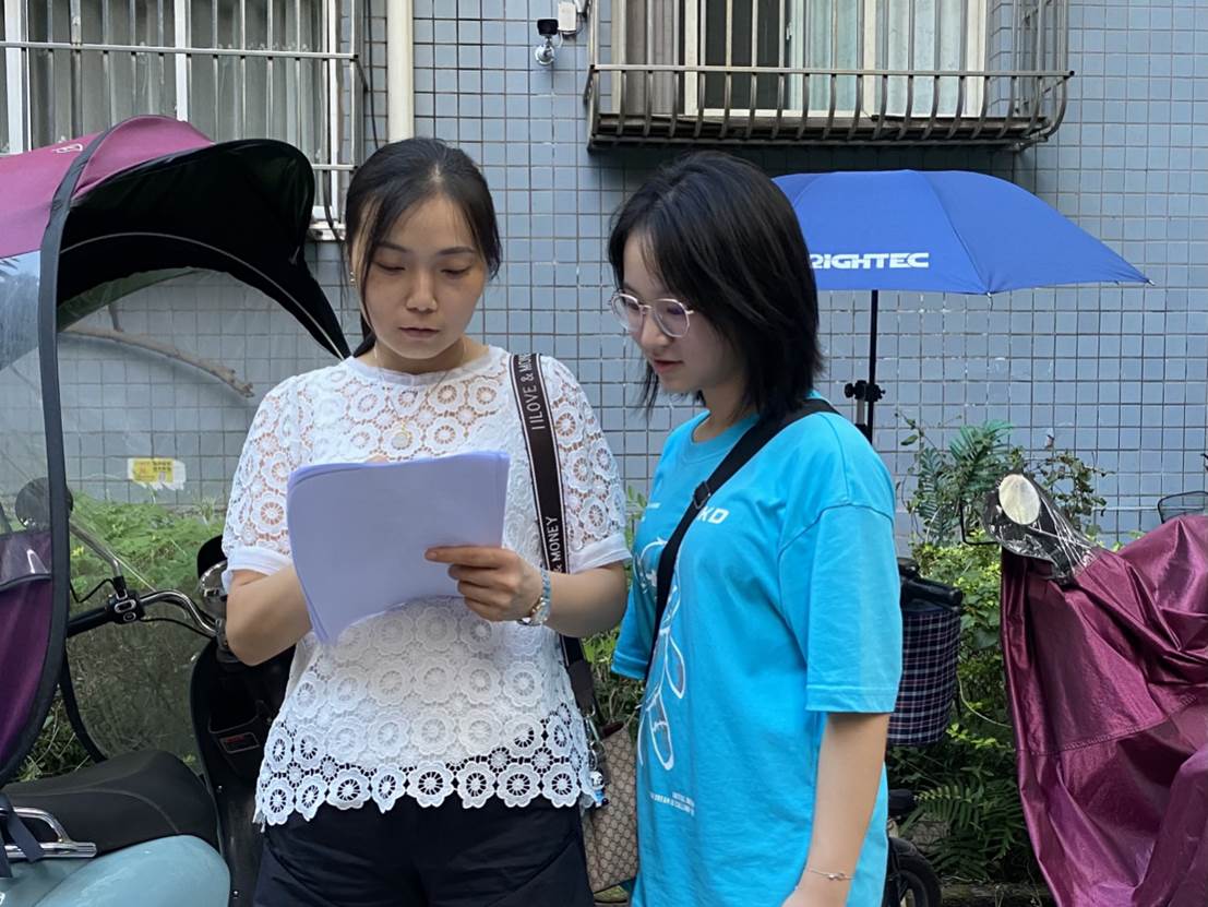图为队员走访居民填写环保问卷调查 江佳欣 摄