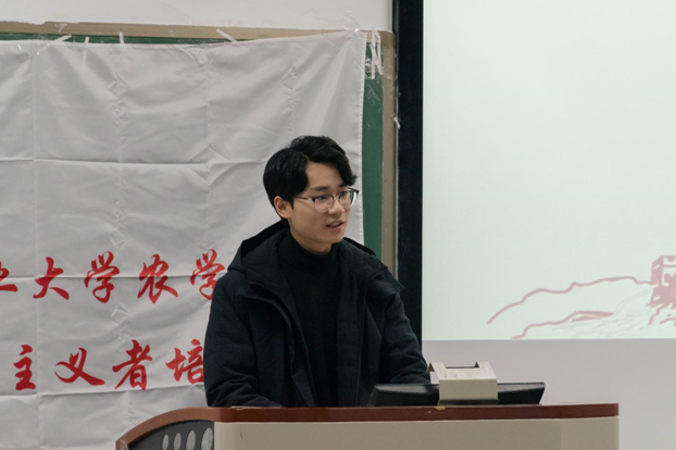 图为农学院学生团委副书记汤苏扬主持结业典礼