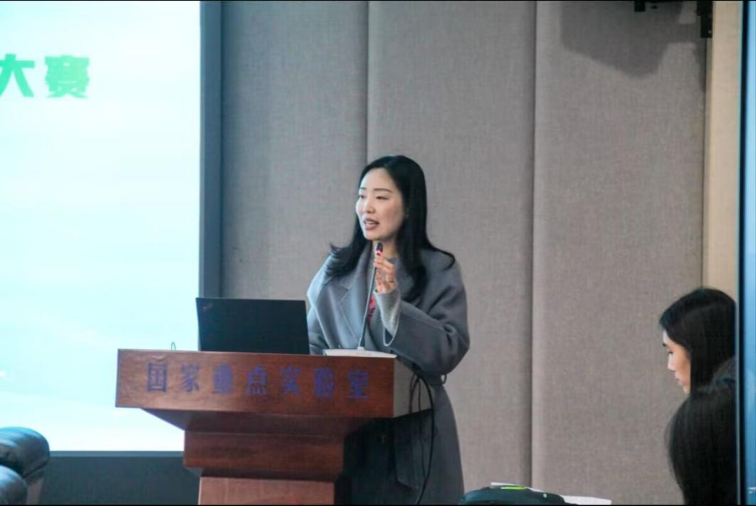 图为闫宇薇进行赛前讲话