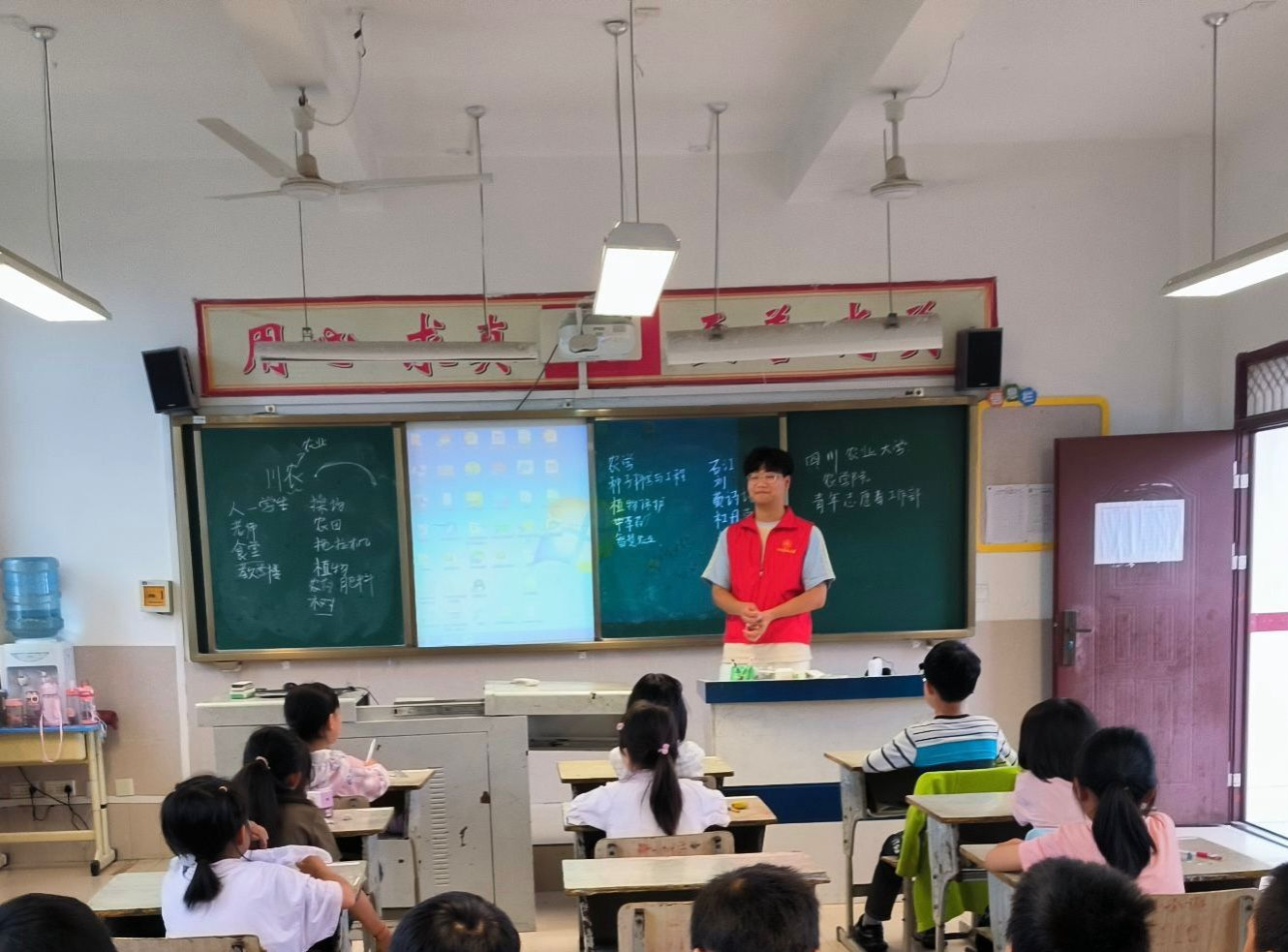 在思想道德修养方面,团队的集中注意力课和儿童心理课颇具巧思。集中注意力课围绕“自我认知”“反应判断”以及“专注引导”展开,主题鲜明,成员伍唅为小朋友们架起了联结当下与未来的桥梁。儿童心理课则解答了如何做情绪的主人、如何应对挫折等常见疑惑。此外,团队负责人李镇江以宣讲会的形式向孩子们介绍川农杨开渠、江姐的感人事迹,勉励小朋友们树立远大志向,砥砺前行!