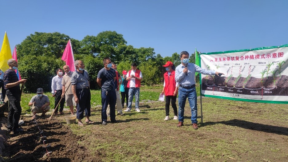 在乐山市农业农村局总经济师李永红、犍为县副县长杨谦等相关部门负责人的陪同下,杨峰了解了犍为县大豆玉米带状复合种植情况及存在的问题,高产示范点春耕播种准备情况,并现场进行了培训。培训会上,杨峰围绕选配品种、扩间增光和缩株保密三个核心技术,化学控旺、减量施肥和绿色防控三个配套技术进行了详细讲解,指出宜机械化地块则机械化实施,逐步让机器代替人力,农业生产标准化,并对相关技术人员提出的问题进行了逐一解答,确保实际生产过程中关键技术的准确实施,达到“玉米不减产,增收一季大豆”。杨谦表示在省市各级领导专家的指导和支持下,一定会尽最大努力,严标准、严要求把技术落实到位,做出犍为县高产示范样板。