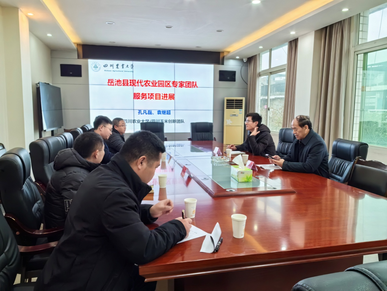 1月19日,农学院袁继超教授团队赴岳池县开展校地合作和科技服务。岳池县农业农村局副局长陈高林、农技站站长彭斌,岳池县现代农业园区服务中心副主任彭恒,四川黍本道农业开发集团有限公司负责人林龙、兰才能等参加。