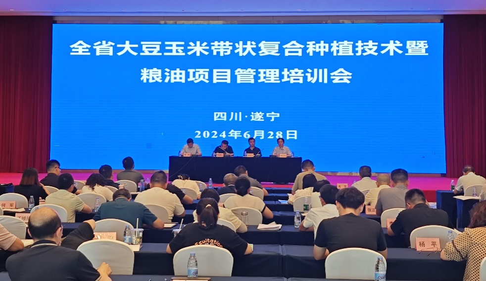 为深入贯彻大豆玉米带状复合种植示范任务,提升技术实施效能与普及度,确保技术措施有效落地,6月28日,四川省农业技术推广总站主办的“全省玉米大豆带状复合种植技术培训暨粮油项目管理工作会”在遂宁市安居区成功召开。省农业农村厅、省农业技术推广总站、21市州相关部门负责人、企业代表及种植大户等一百余人参加会议。我校农学院大豆玉米带状复合种植与循环利用团队杨文钰教授、雍太文教授、王小春教授、常小丽副教授、李雨泽副教授参会。