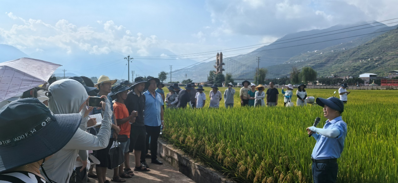 为提升汉源县水稻机械化生产水平,加快机插栽培技术在汉源的推广应用,9月4日,由农学院联合国重实验室和汉源县农业农村局共同举办的水稻高产高效机插栽培技术培训观摩会在汉源县九襄镇新阳村水稻机插栽培百亩示范基地顺利举行。来自雅安市农业农村局、绵阳市农业科学研究院、四川金色绿丹种业有限公司等企事业单位,以及汉源九襄、前域等乡镇相关负责人、农技人员和农户代表等近100人参加了此次培训观摩会。