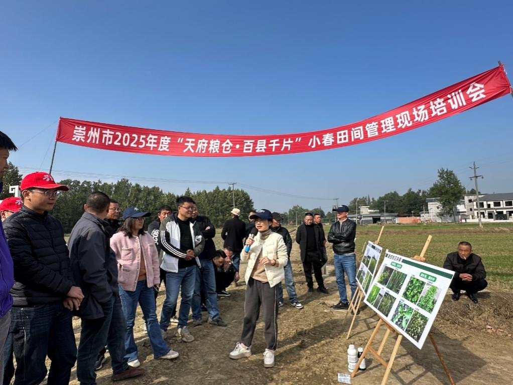 11月28日,崇州市农业农村局在隆兴镇举办了“天府粮仓·百县千片”小麦田间管理现场培训会。我校农学院、小麦所以及西南科技大学专家,崇州市农业农村局相关领导,规模化种植业主等100余人参加了此次会议。会议由崇州市农业农村局科教站曾代松科长主持。