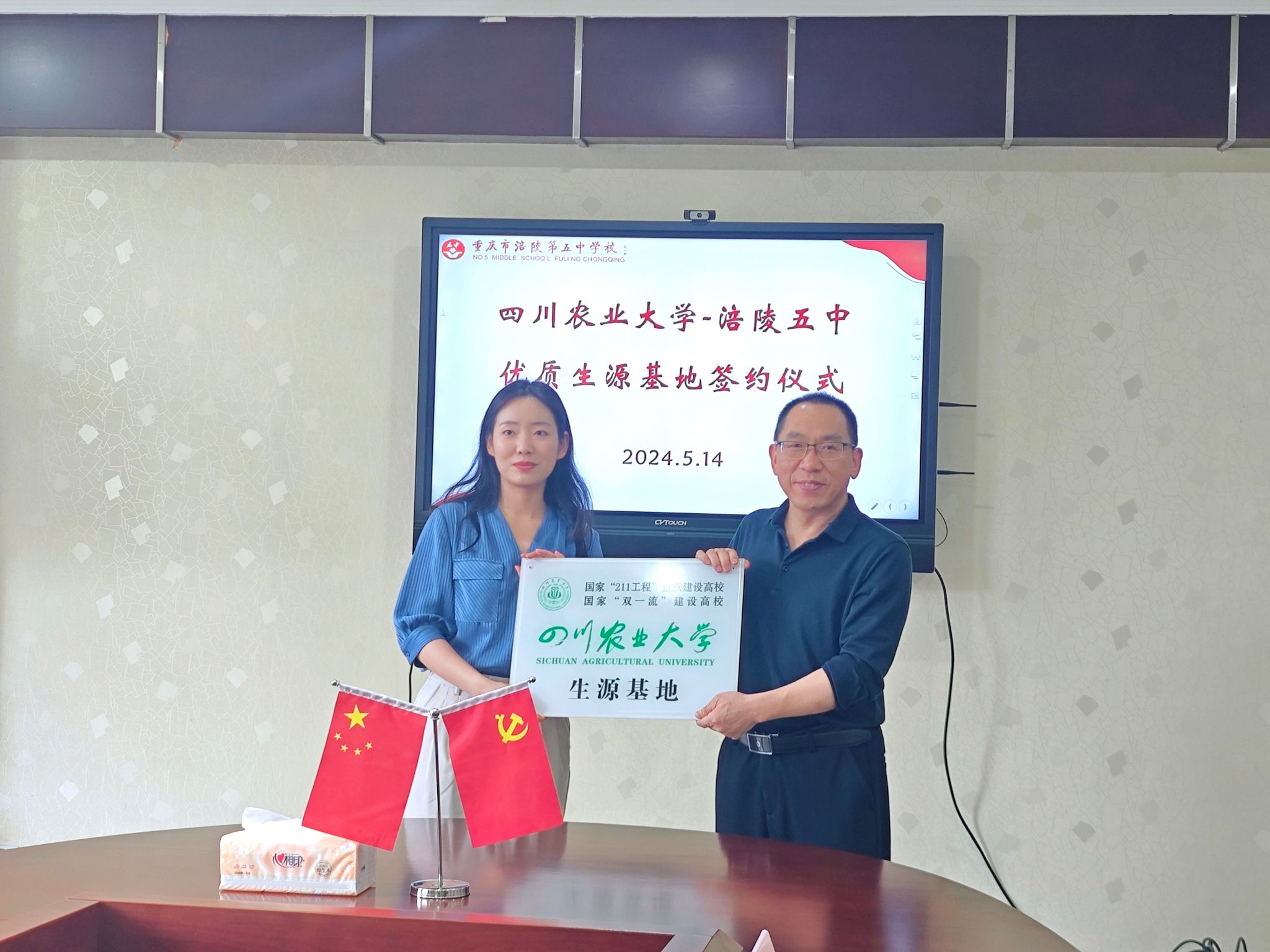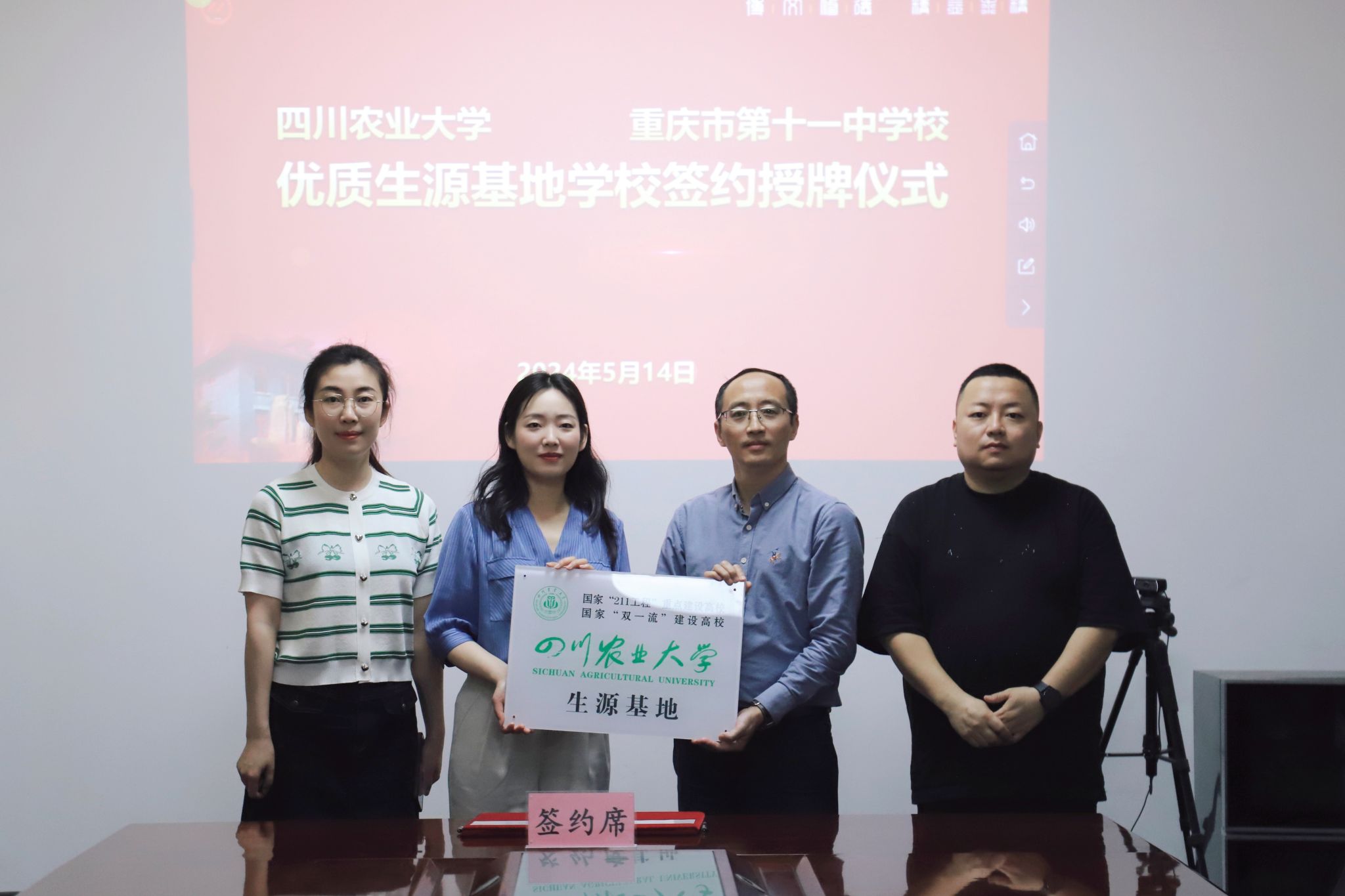 5月13日至14日,四川农业大学农学院党委副书记闫宇薇及招生专员贾佳代表我校,与重庆市第十一中学校、重庆市涪陵第五中学校进行了深入的交流,并成功签约共建“优质生源基地”,同时举行了庄重的授牌仪式。此次活动得到了两所中学领导、年级主任及教师代表的热烈支持与积极参与。