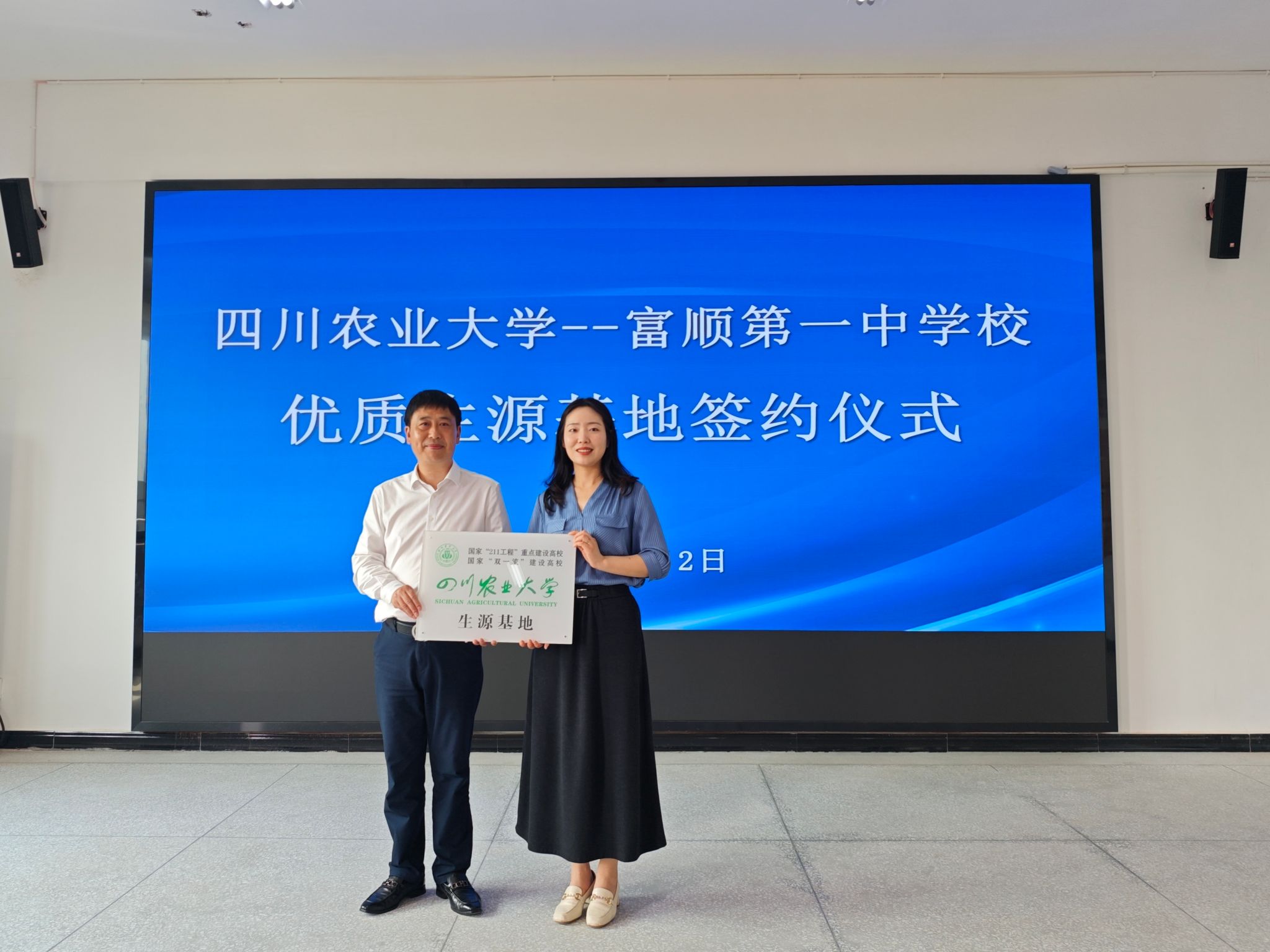4月1日至3日,四川农业大学农学院党委副书记闫宇薇与农学院招生专员贾佳受学校招生就业处委托,先后与自贡市第一中学校、富顺第一中学校、自贡市旭川中学、自贡市江姐中学等四所中学进行了深入交流,并成功签约建立“优质生源基地”,同时进行了授牌仪式。相关中学的领导、年级主任及教师代表出席了此次活动。