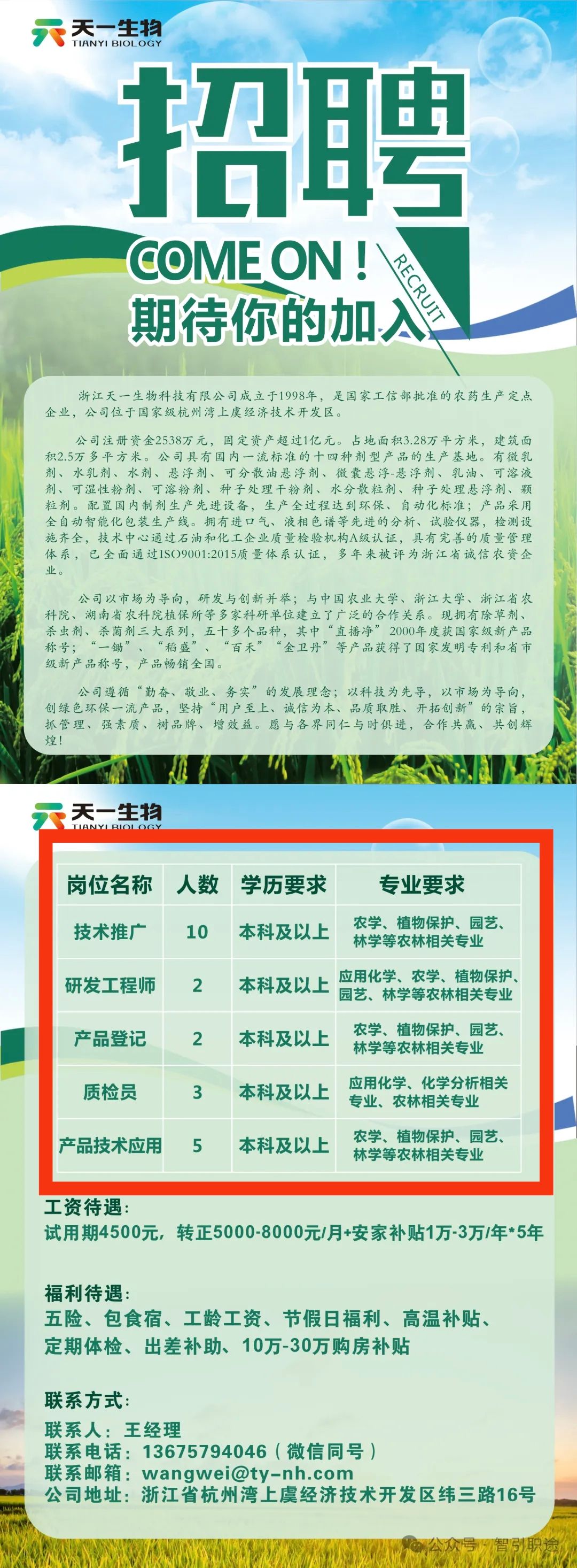【农院校招】 浙江天一生物科技有限公司2025校园招聘