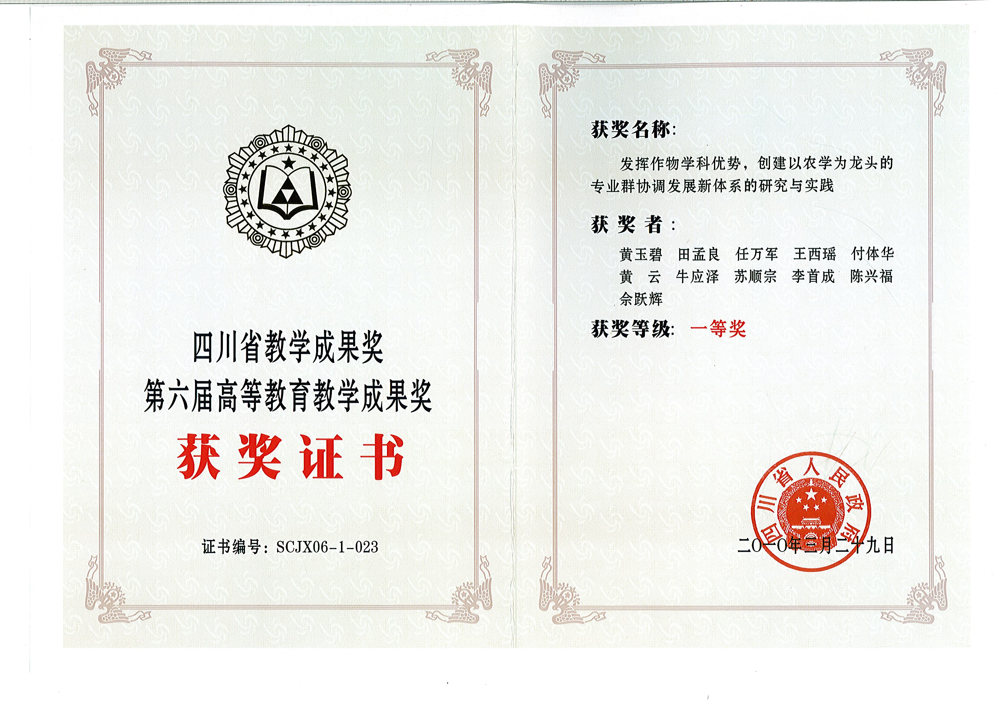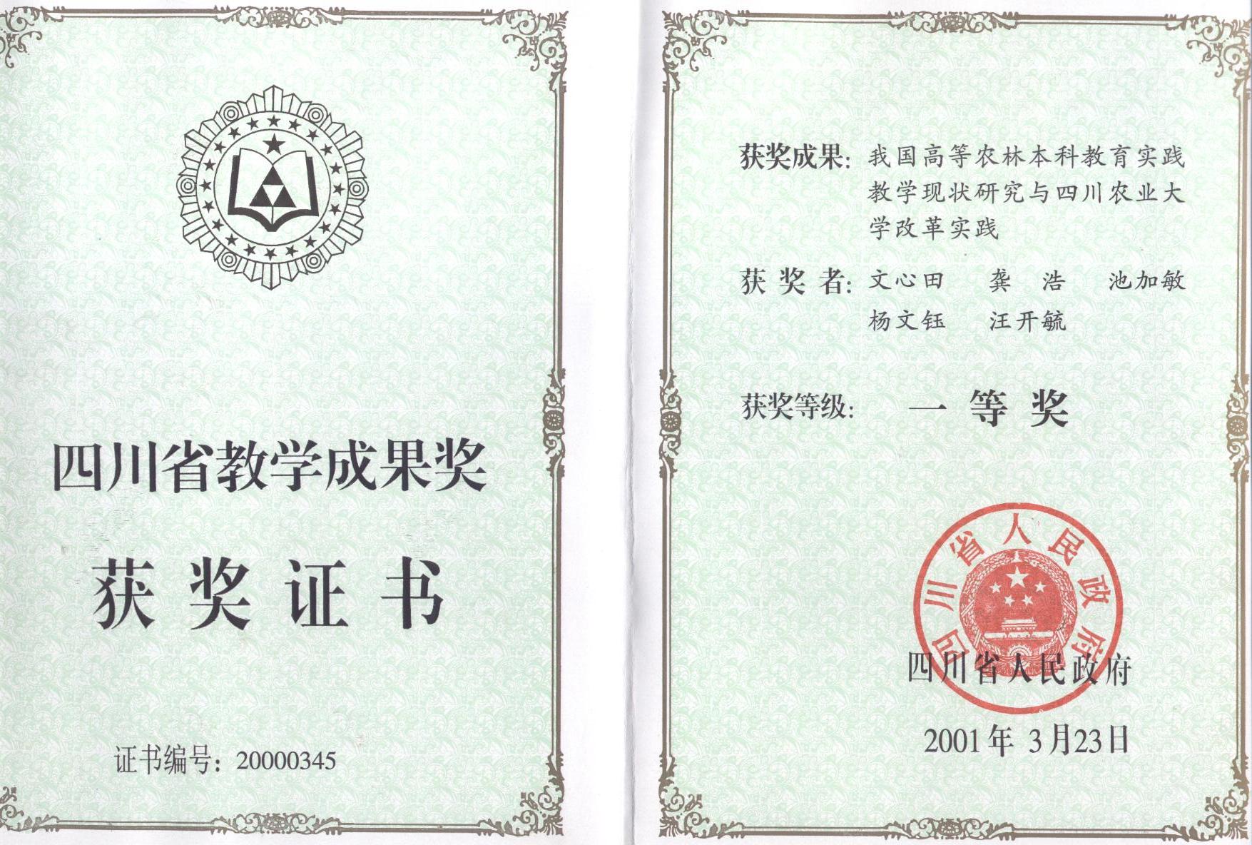 四川省教学成果一等奖