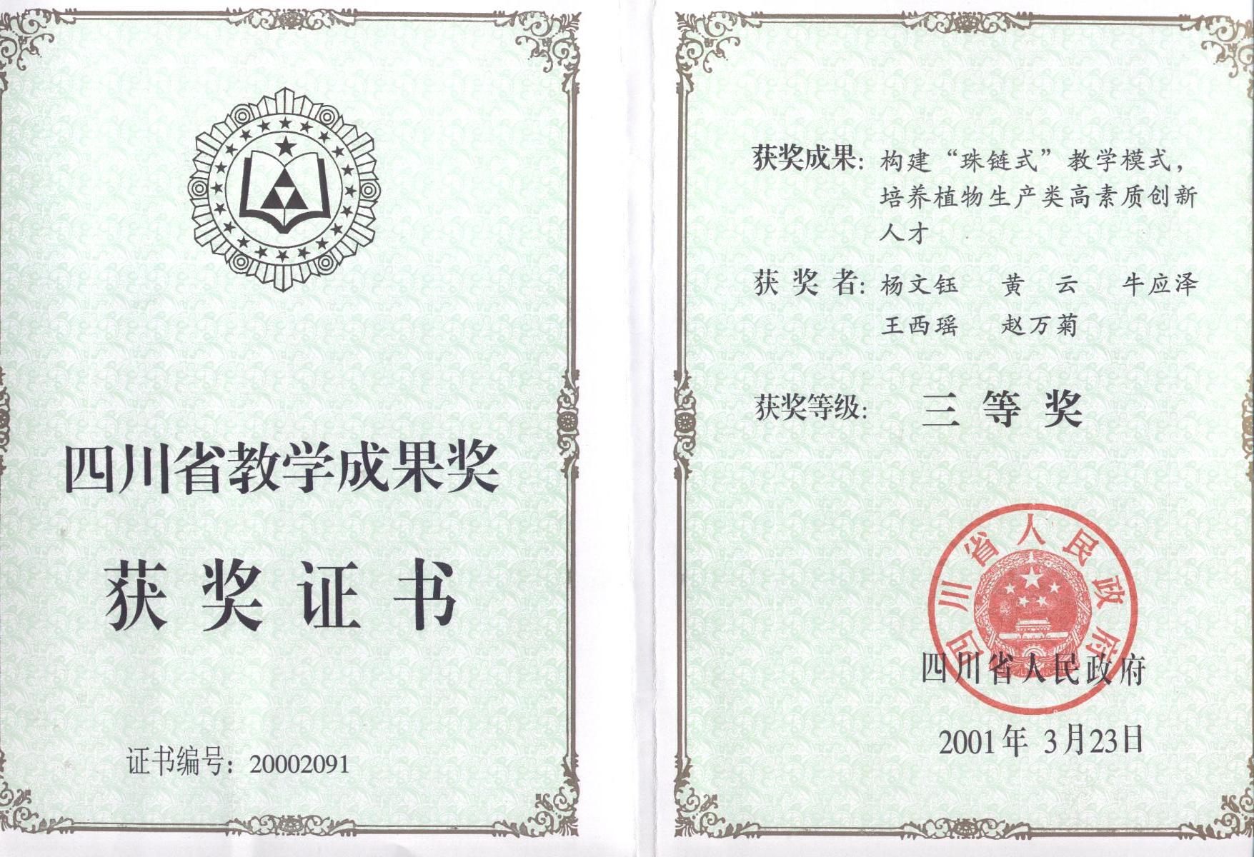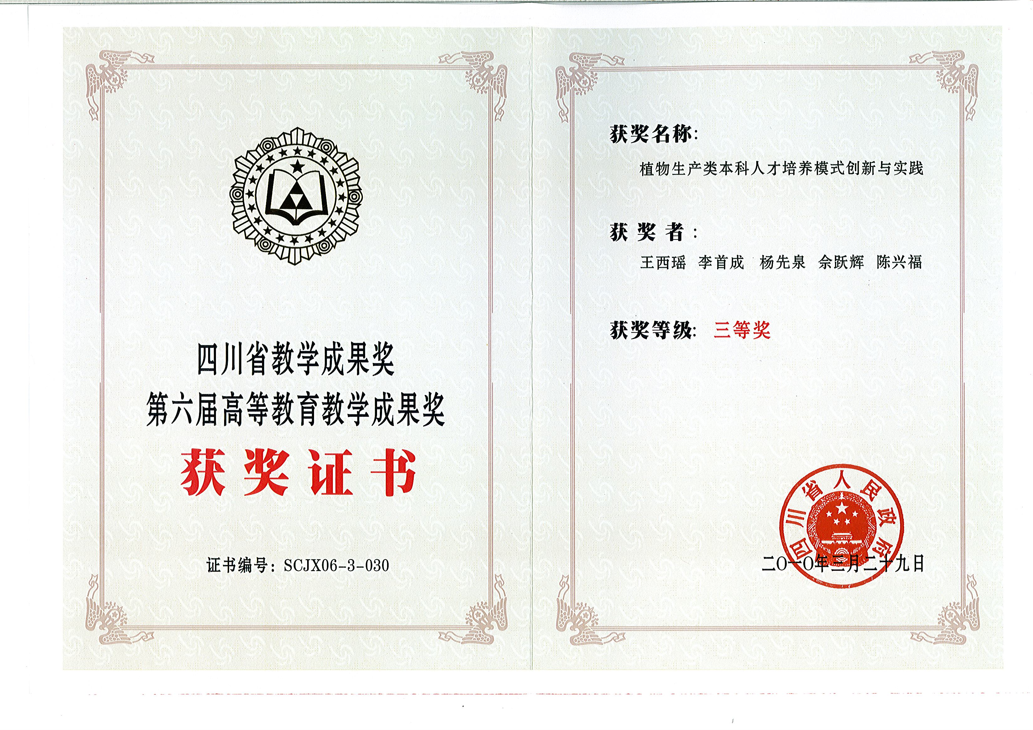 四川省教学成果三等奖