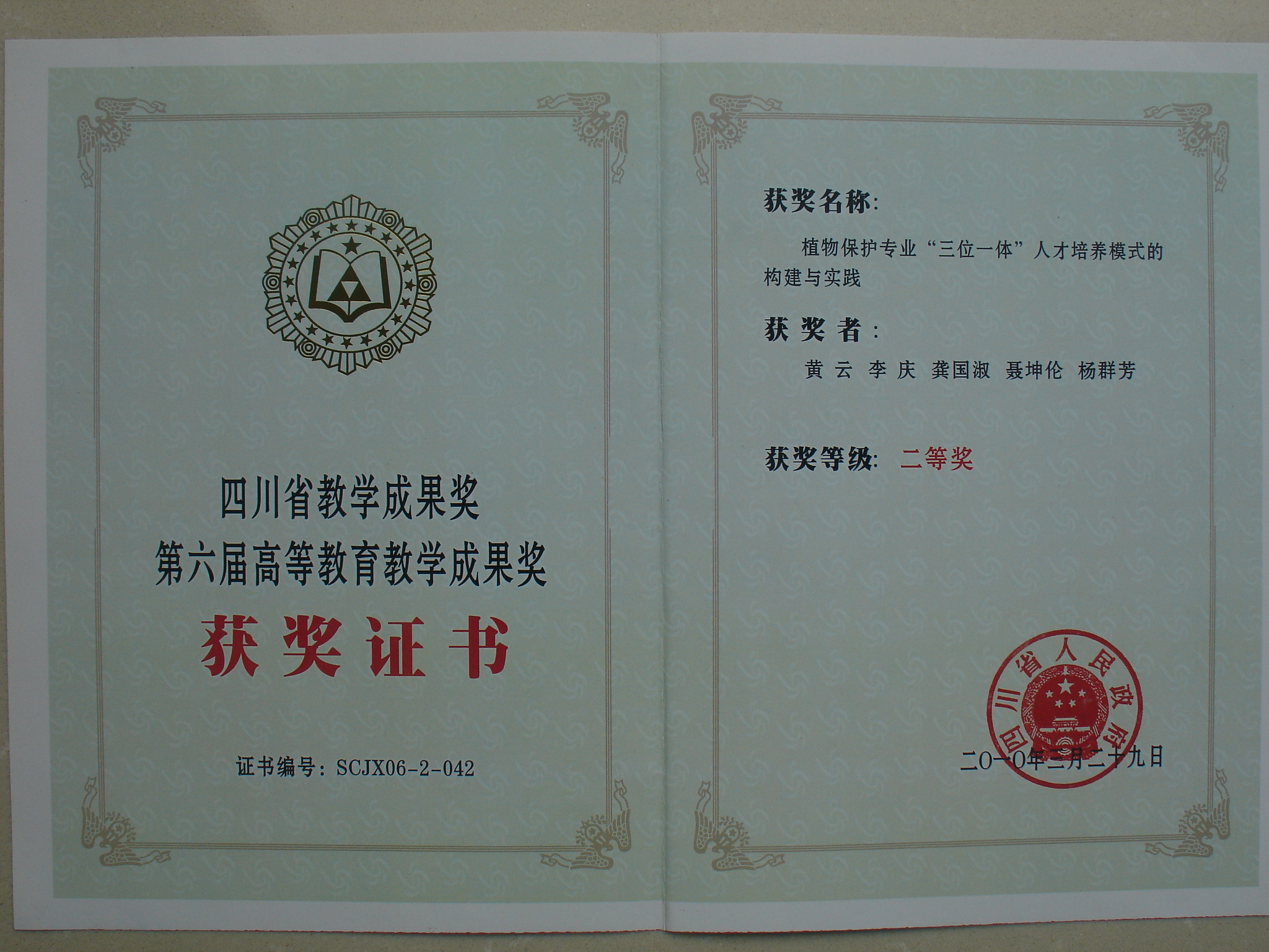四川省教学成果二等奖
